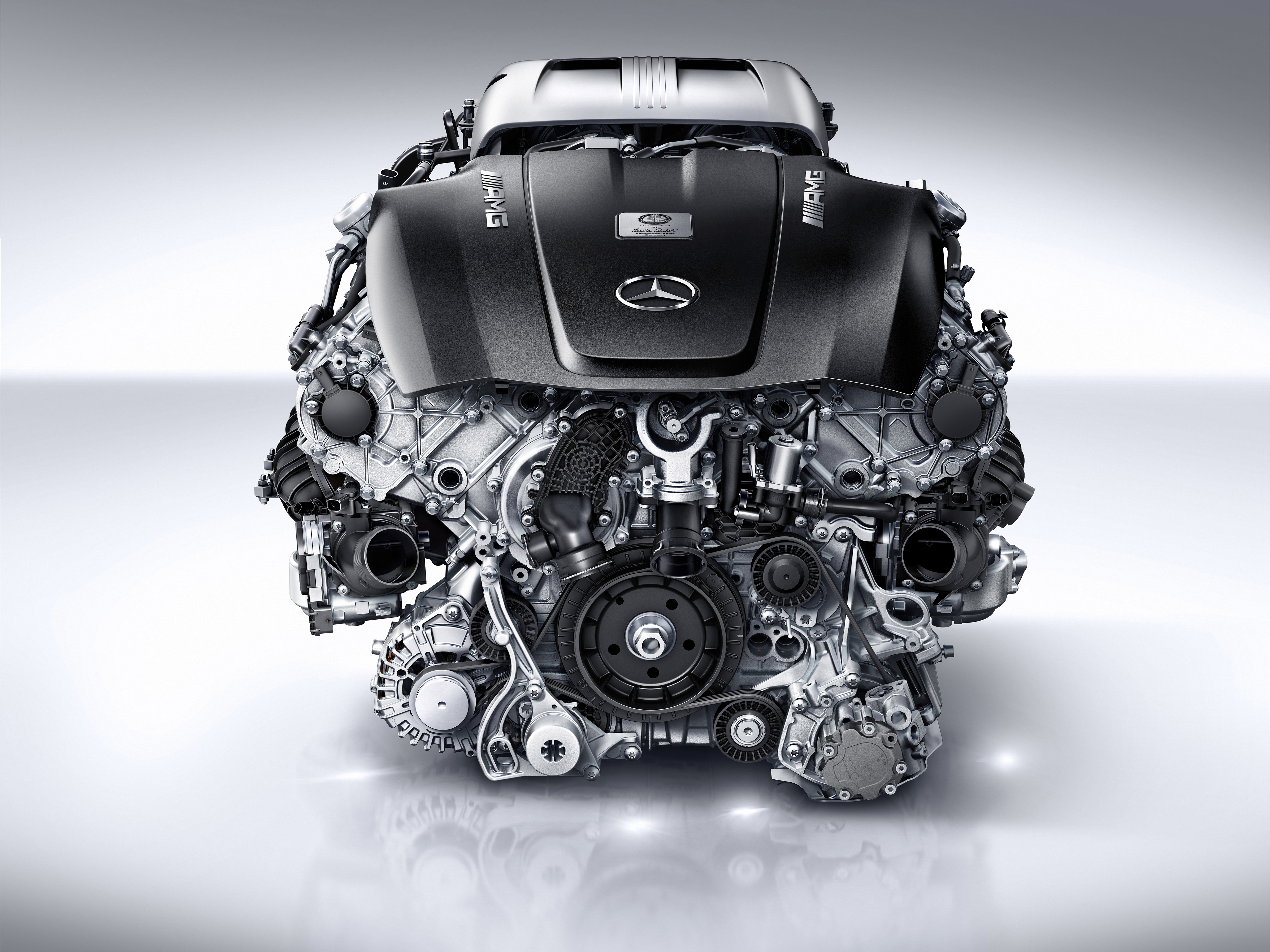 Novi AMG V8 motor ima dva turbo punjača koji nisu montirani izvana, nego unutar V konfiguracije. Prednosti su kompaktan dizajn motora, optimalan odziv motora i niske emisije ispušnih plinova. Suhi karter omogućuje niže postavljanje motora (za 55 milimetara), što pomiče težište bliže cesti i predstavlja temelj za visoka bočna ubrzanja, a M178 (kućna oznaka) iz AMG-a je prvi takav motor u svijetu sportskih automobila, a suhom težinom od 209 kg novi AMG V8 je najlakši motor u segmentu.