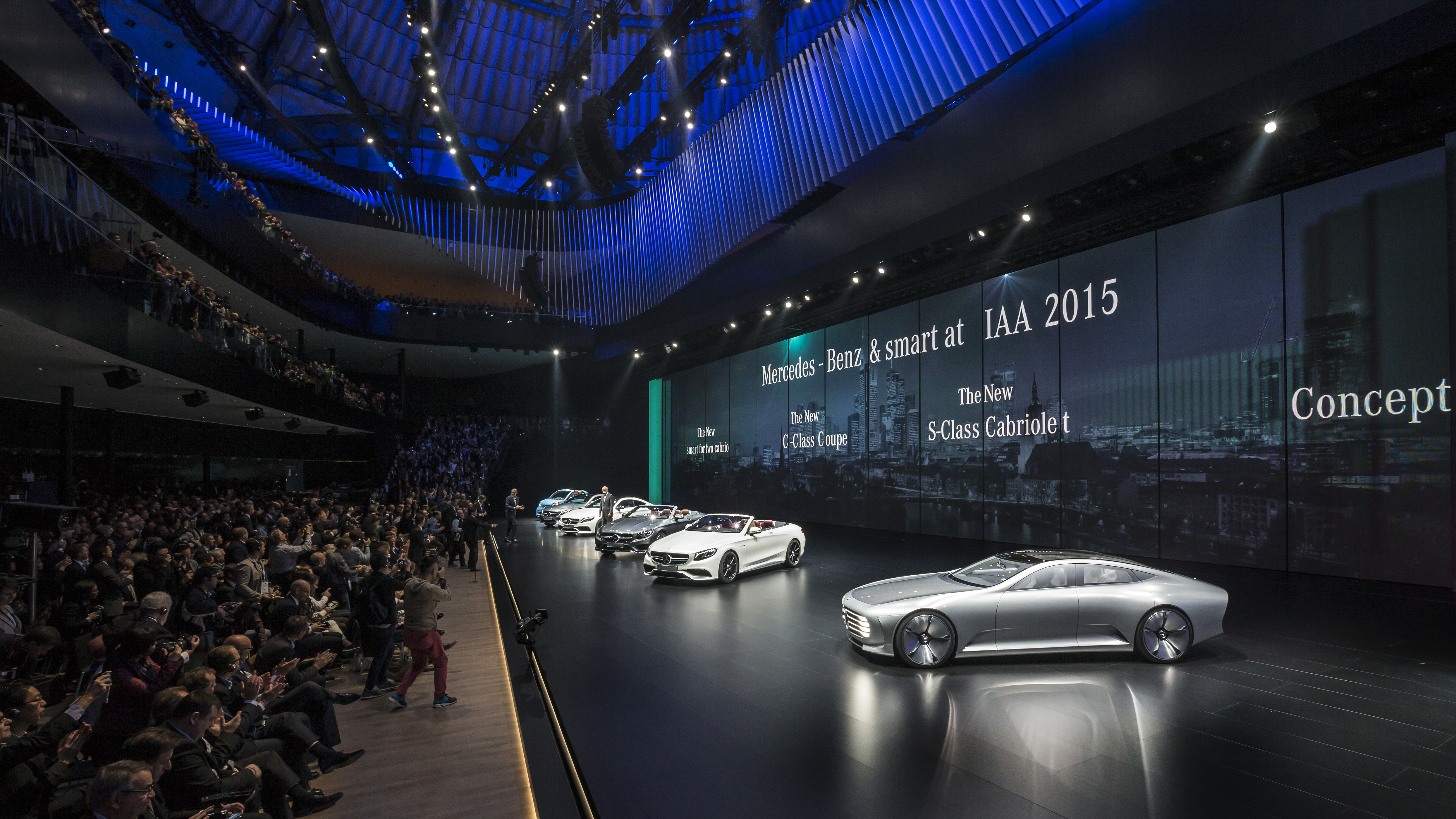 Mercedes-Benz još jednom postavlja mjerila u središtu automobilske fascinacije, na ovogodišnjem IAA u Frankfurtu, inovativnom snagom pet svjetskih premijera. Četiri nova modela proširuju ponudu Mercedes Dream Carsa – nova C-klasa Coupé i nova S-klasa Cabriolet , svaki u dvije samostalne verzije iz Mercedes-Benza i Mercedes-AMG-a. Debi u Frankfurtu jutros je doživio i koncept Inteligentni Aerodinamični Automobil, poznata kao Concept IAA. “Digitaltransformer” pokazuje koliko je Mercedes-Benz već napredan u digitalizaciji automobilskog razvoja i proizvodnje. Još jedna svjetska premijera pod okriljem Mercedesa u Frankfurtu je novi SmartCabrio, jedini “pravi” Cabriolet u svojoj klasi.