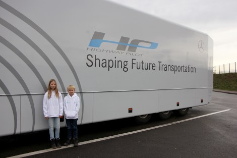 Mercedes-Benz Actros s Highway pilotom ponovno je krstario cestom, ali ovaj puta bez političara i medijskih djelatnika, već zbog Geniusovih malih reportera Emme Reinke (11 godina) i Nicka Hoffmanna (10 godina). Ovo dvoje školaraca imalo je ekskluzivnu priliku iskusiti vožnju autocestom u kabini autonomnog kamiona. Na autocesti A8 između Denkendorfa i zračne luke Stuttgart su imali dovoljno vremena da postave najvažnija pitanja Enricu Wohlfarthu, koji je odgovoran za kamion kao inženjer u razvojnom odjelu Daimler Advance.