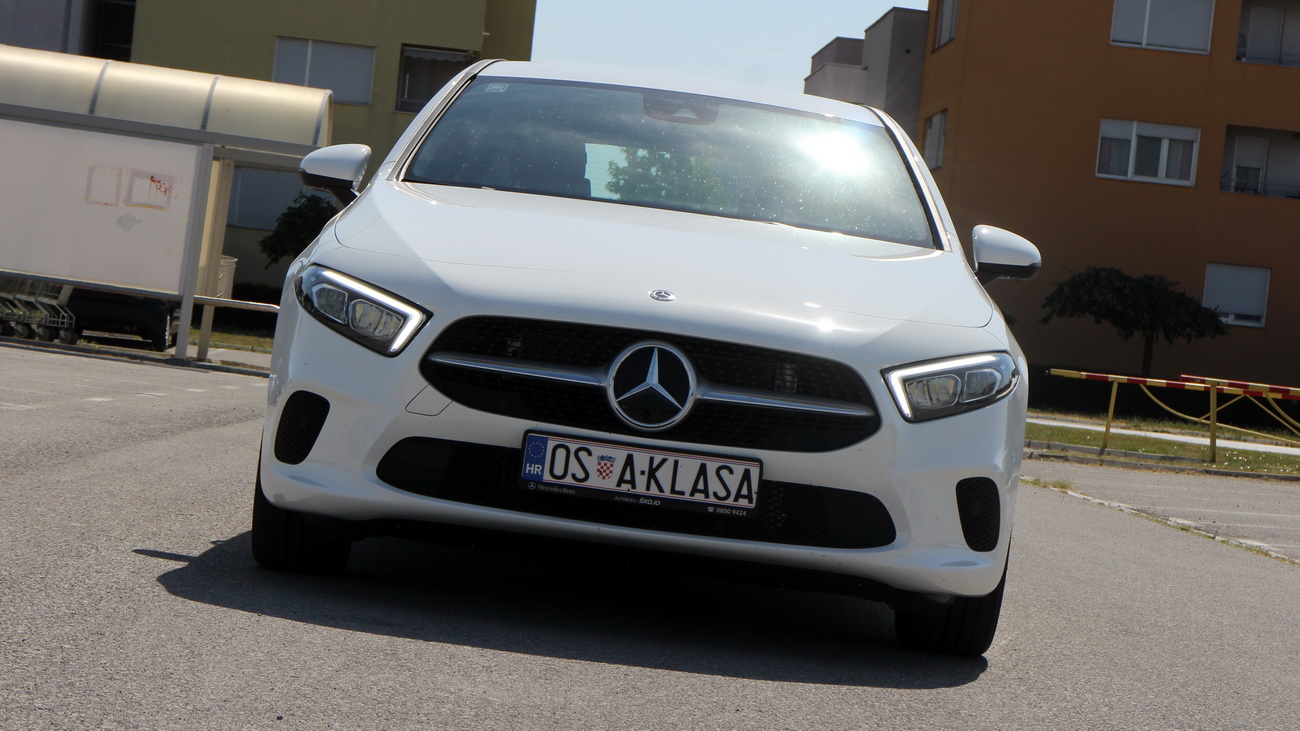 Točno tri godine nakon što smo vozili zadnji model, sjeli smo za upravljač ovog najnovijeg modela Mercedes-Benz A180d. Iako uspomene nikako nisu svježe, odmak od prošle generacije je golem. Krenuti ćemo od vanjskog izgleda koji je u potpunosti redefiniran i jasno se distancira od prethodnog modela. Prednji kraj inspiraciju je pokupio od najnovijeg izdanja CLS modela, a u Mercedes-Benzu ga nazivaju „senzualnom čistoćom“. Progresivni dizajn prednjeg kraja s niskim poklopcem motora, vodoravnim LED svjetlima s kromiranim elementima te dnevnim pozicijskim svjetlima u obliku baklje osigurava emocionalno privlačni izgled. Zaista, ne možemo zamisliti da bi netko mogao reći kako ovaj automobil nije skladan i lijep. Istaknuta prednja maska s Mercedesovom zvijezdom, čija silueta se otvara prema dnu što je nasljedstvo prethodnika, uključuje klinove u obliku dijamanta i središnju srebrnu prečku koja ističe sportsku notu ovog modela.