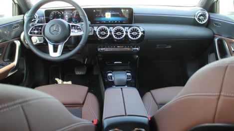 I dok je vanjština svojstvena A klasi, unutrašnjost je ono što će vas sigurno oboriti s nogu. Naime, kada biste vidjeli sliku unutrašnjosti bez naznake o kojem je modelu riječ sigurno bi mnogobrojni na prvu pomislili kako je riječ o S klasi, možda E klasi. Jedinstvena unutrašnja arhitektura posebno je oblikovana potpuno novim dizajnom prednje ploče jer po prvi put je uklonjen pokrov iznad instrumenata. Zahvaljujući tome, glavno tijelo prednje ploče u obliku krila izdužuje se od jednih do drugih vrata bez vizualnog diskontinuiteta, a uz to donji dio je vizualno odvojen od glavnog tijela s ”utorom” te kao da lebdi ispred prednje ploče. Ambijentalno osvjetljenje naglašava ovaj efekt. Široki zaslon je u potpunosti samostojeći i podsjeća na jedan veliki tablet. Dodatna istaknuta značajka su ventilacijski otvori sa sportskim izgledom turbine. Zahvaljujući opcijskom ambijentalnom osvjetljenju s brojnim bojama ili gotovim kombinacijama boje možemo stvoriti totalno drugačije dojmove unutrašnjosti. Kvaliteta materijala i izrade je vrhunska i jasno daje do znanja kako je ovdje riječ o premium automobilu.