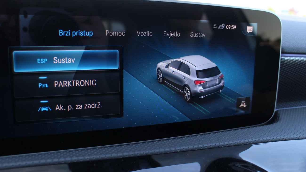 Poseban dio A klase je njen tehnološki pedigre. Nova A-klasa prvi je Mercedes-Benz model koji ima potpuno novi multimedijski sustav MBUX – Mercedes-Benz User Experience, koji također prelazi u novu eru MercedesMe povezivosti. Jedinstvena značajka ovog sustava je njegova mogućnost da uči zahvaljujući umjetnoj inteligenciji. MBUX može se individualizirati i prilagođava se korisniku, čime se stvara emocionalna veza između vozila, vozača i putnika. Koje su mogućnosti ovog sustava teško je nabrojiti, a čak i nama kao tehnološkim fanaticima nije bilo dovoljno nekoliko dana druženja s A klasom kako bismo sve pohvatali. U kratkim crtama, ovaj sustav sastavljen je od dva velika 12,5-inčna zaslona povezana u jedan. Dok je prvi instrumentalni i uglavnom vezan za vozača i informacije tijekom vožnje, drugi je sve ostalo – od informacija do zabave. Ovaj potonji zaslon ujedno je i osjetljiv na dodir pa pojednostavnjuje rukovanje. Međutim, glavninu operacija vozač će izvršiti preko kontrola i malenih touchpadova na upravljaču, dok će suvozač to isto moći napraviti na golemom touchpadu i dodirom po zaslonu.
